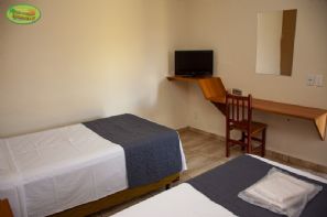 Apartamentos com cama de solteiro, TV(4 canais a cabo sujeito a sinal satélite da claro tv, 8 canais rede aberta).